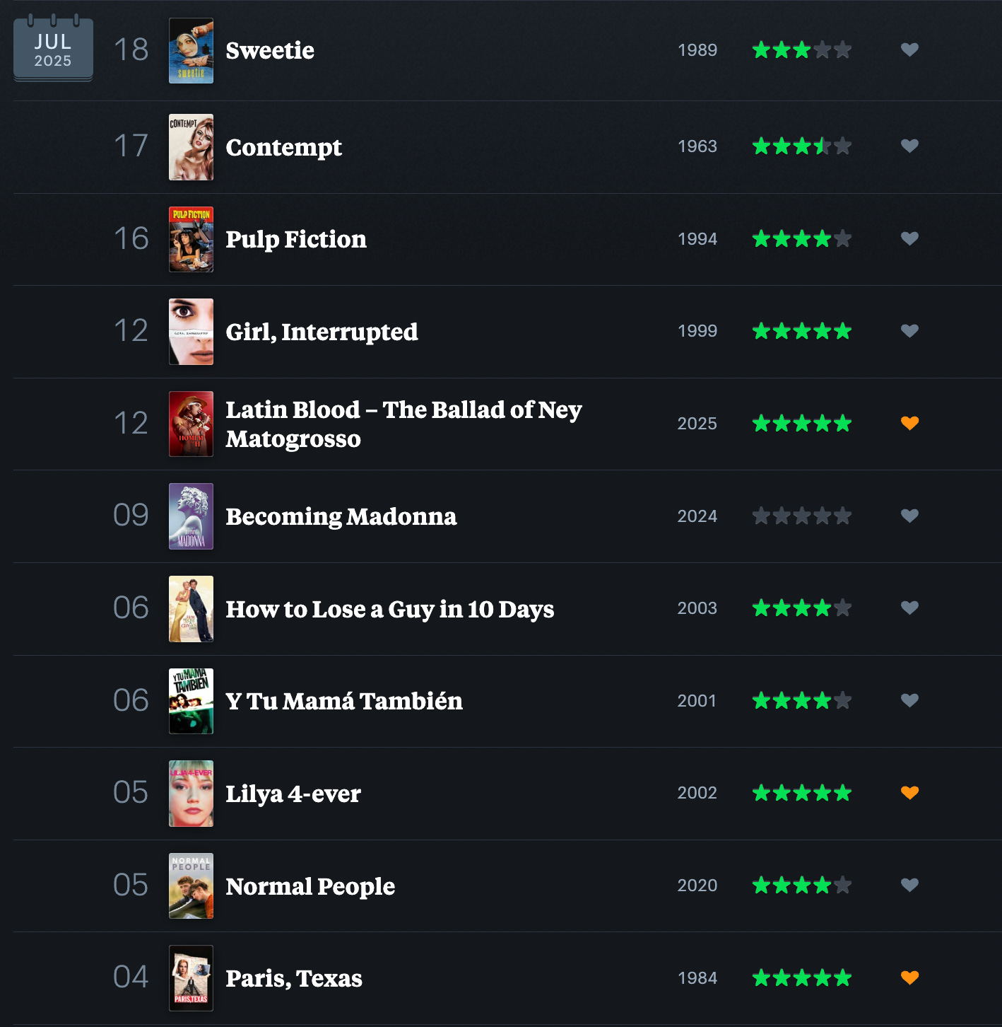 So, over the course of thirty-one days, I’ve watched ten movies and two shows. I finally had time (and patience) enough to sit down and start crossing some things off my watch list — also, feel free to add me on Letterboxd.
